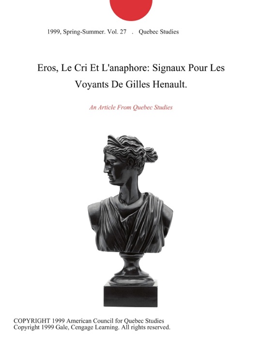 - Title: Eros, Le Cri Et L'anaphore: Signaux Pour Les Voyants De Gilles Henault.